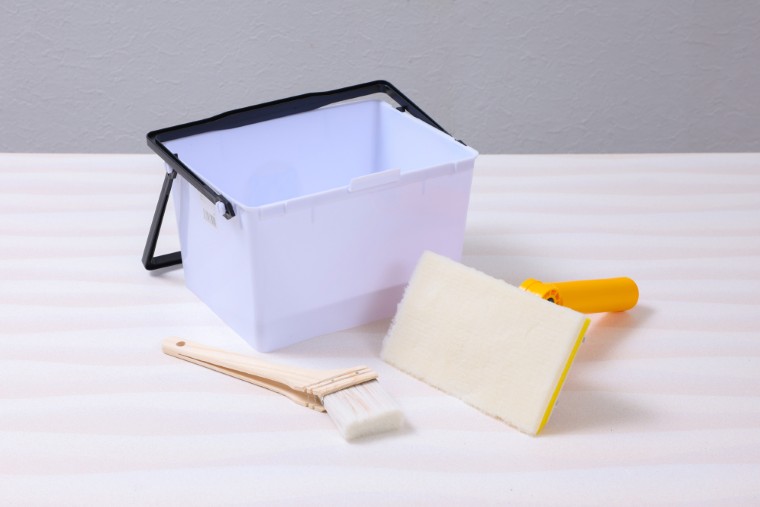 撹拌した直後は塗料の表面に泡が浮いています。塗料用バケットに注いだら、すぐに塗らないで泡が消えるのを待ちましょう。