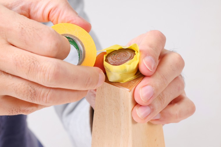 金具などの塗料で汚したくない部分をマスキングテープで養生します。