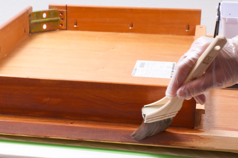 筋交いバケを使って脚や引き出しなどの取り外した部品を塗ります。