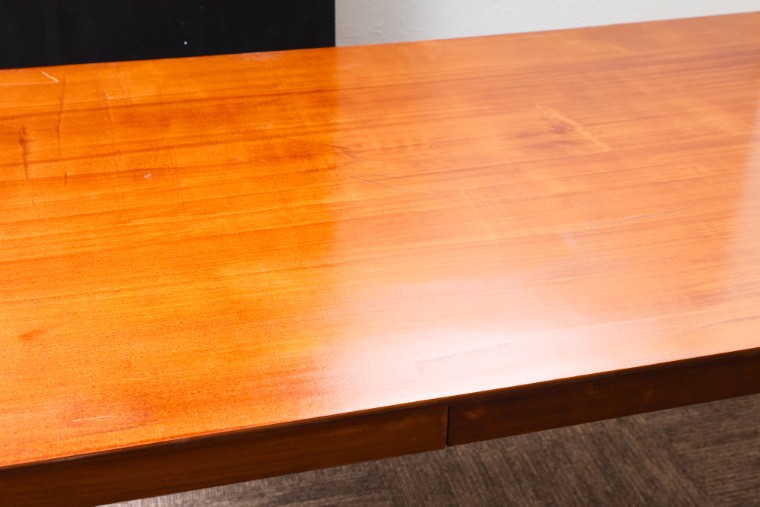 木製テーブル、とくに普及価格帯のものは多くがウレタン塗装で表面を仕上げています。