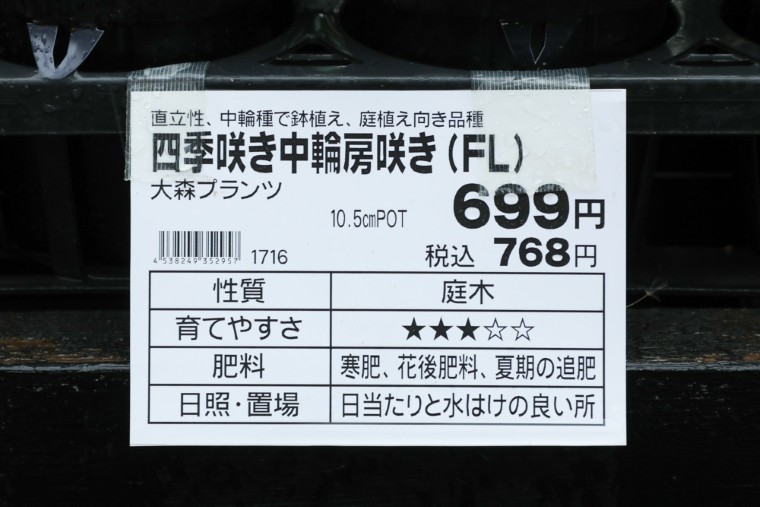 バラの品種は市場に流通しているだけでも2000~3000種と言われています。園芸の初心者が、あまり知識のないまま店頭に行っても、どれを選んでいいのか途方に暮れるだけでしょう。そんなときに参考にできるのが、バラの苗についている品種説明のカードです。このカードには品種名、花の色や形状がわかる写真とともに、そのバラが属する系統、樹形、開花周期、耐病性、日照条件などが記されています。入手したい品種が決まっていなければ、ここに記載された情報をもとに大まかな特性を知ることができます。次にあげるポイントを参考にチェックすれば、初心者でも育てやすい苗を選ぶことができるでしょう。