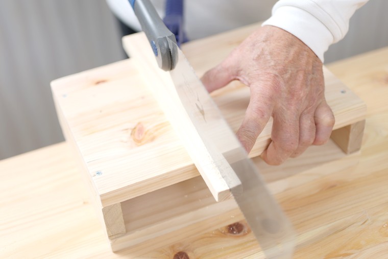 留め継ぎ加工の補強の役割も担うデザインピースは厚みが薄いため、カットする場合は胴付きノコギリを使いましょう。