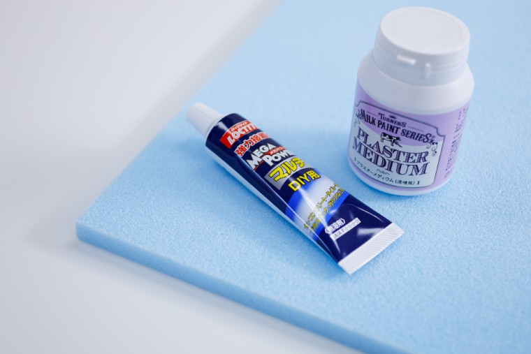 専用の接着剤がない場合は、発泡スチロールやペットボトルで使う無溶剤・弾性接着剤でもOKです。