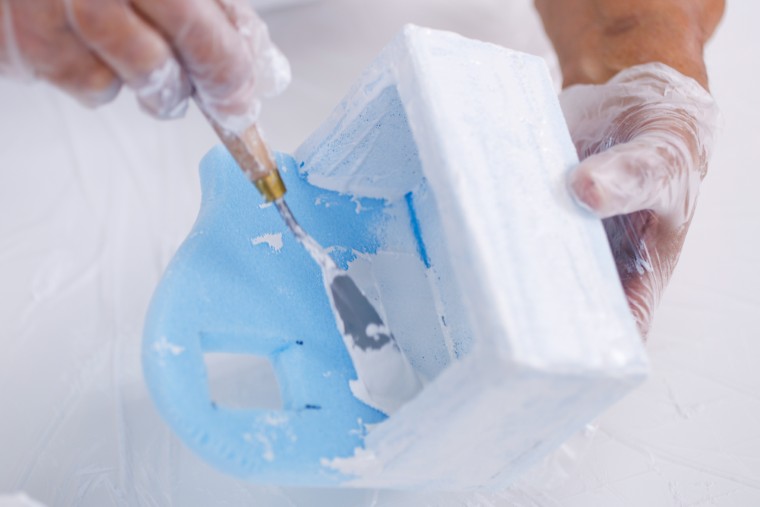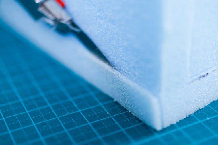 パーツを切り出したら、断熱材に適した専用の接着剤を接合面にたっぷり塗ります。