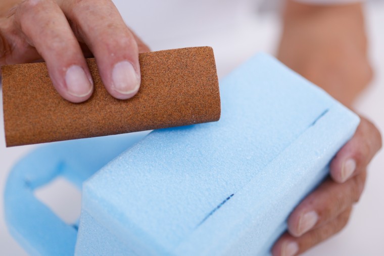 丸くした角や段差の切り落としたところを中心に、サンドペーパーで軽く磨きます。