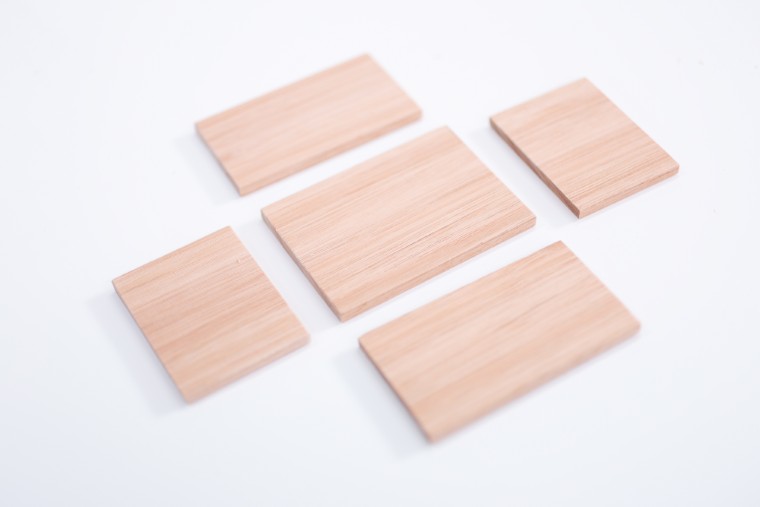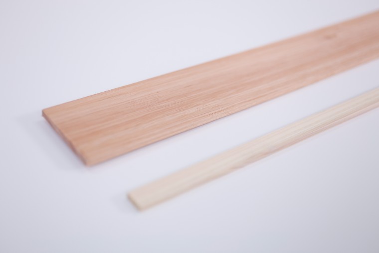 材料は、ユーカリ材:5×60×900mm、ヒノキ材:5×15×900mmの2種類を使用します。