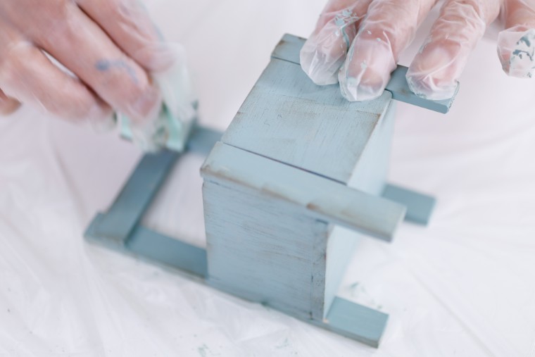 メイクアップスポンジに塗料を染み込ませ、軽く叩くようにして塗っていきます。
