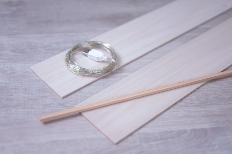 角材は補強用で灯りにはUSB電源で点灯するLEDストリングライトを使います。
