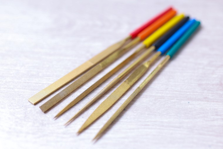カットしたバルサ材に残ってしまったバリなどは、目の細かいやすりを使って取り除いておきます。