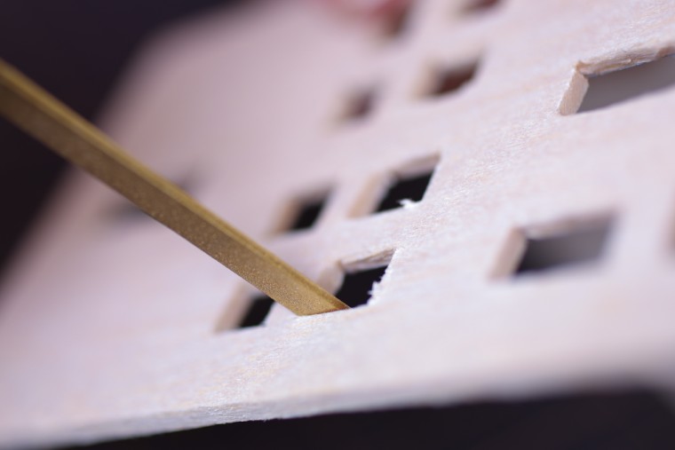 力を入れすぎるとバルサ材が割れてしまうので慎重に作業してください。