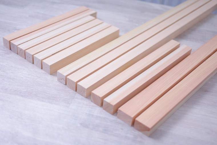 すべてヒノキ材でこちらの材料を寸法通りにカットします。