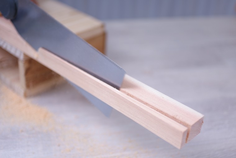 カットした背フレームは、デザイン的なアクセントを加えるために背中の部分に少しテーパー(傾斜)をつけてノコギリでカットし、カンナをかけます。