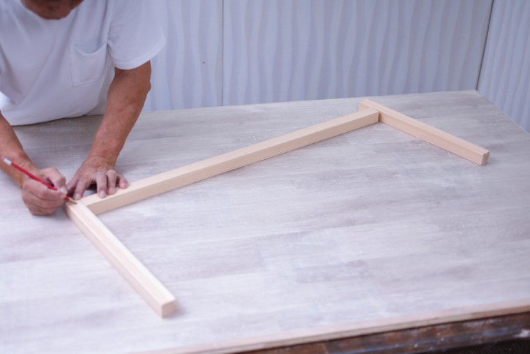 次に脚フレーム用の30mm角の角材をコの字に組み立てます。