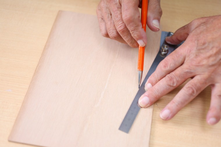 表板に窓をあけるための線を引きます。