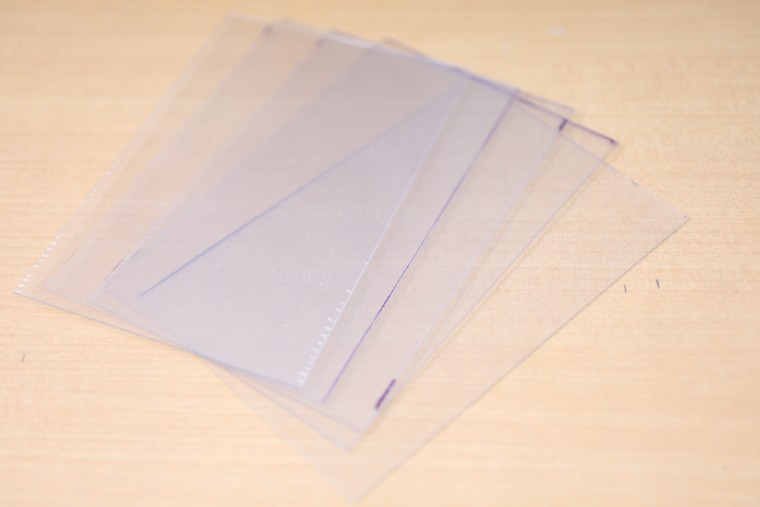 透明の窓は、写真と同じサイズにカットしたPET板を上側の差し込み口から写真と一緒に挿入してセットします。