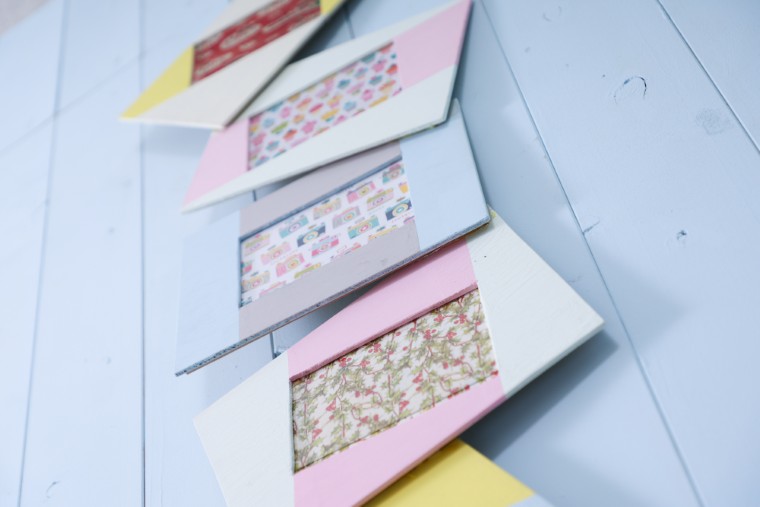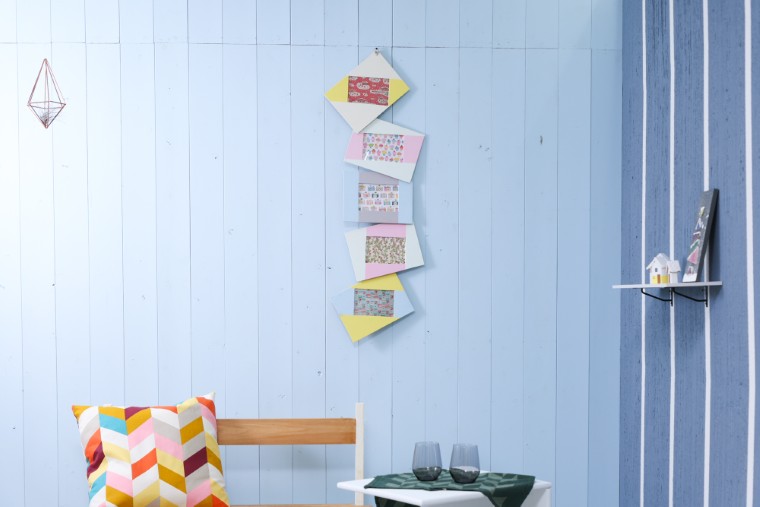 いよいよ仕上げです。 壁に吊るしてみたときに動きを感じられて、それでいてバランスのよい配置になるようにフレームの順番や取り付け位置を決めましょう。 すべてのフレームの窓が水平を保つようにしておくと、飾ったときに写真を見やすいですよ。