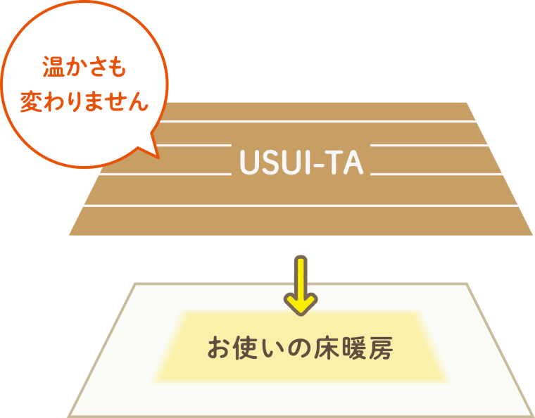 - 床暖房の上から貼ることができ、施工後も温かさはほぼそのままです。