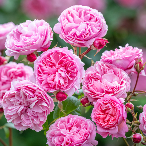 ベリーのような赤いつぼみから、クラシックで落ち着きのある上品なミッドピンクの花が咲く