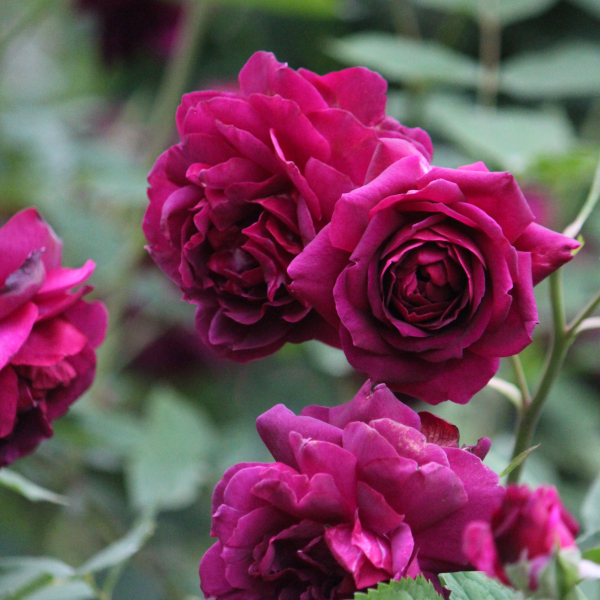●丸弁抱え咲きの花は早咲き性で発色が良い。ダマスク系の強い香り。