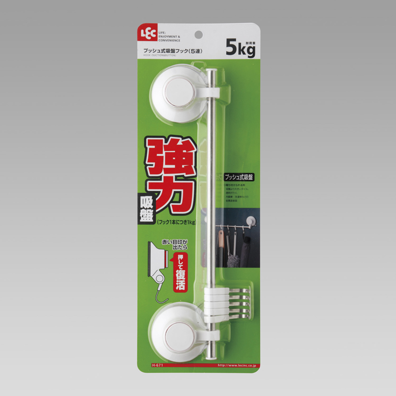 ボタンを押して吸着力が復活する、強力吸盤フックです。