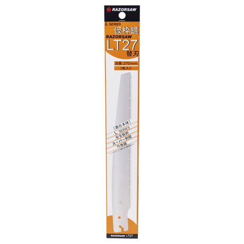 ●刃長:270mm。●ピッチ:2.5mm。●板厚:0.7mm。●衝撃焼入。●サビに強い特殊表面処理。●レーザーマーキング。