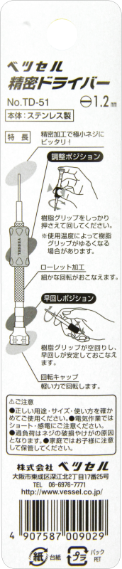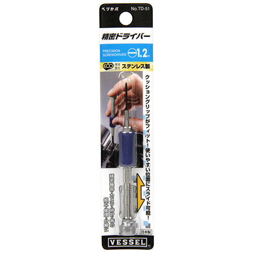 ●サイズ:(-)1.2mm。●軸長:18mm。●全長:98mm。●クッショングリップ色:青。●環境対策品。