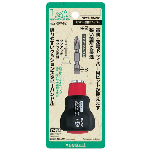 狭い場所での作業に最適なスタビータイプグリップです。ボールチャック式でビットを確実にキャッチします。ビットは電動ドライバーでも使用できるプロ仕様です。