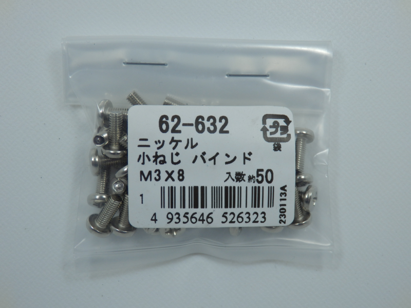 パーツハウス ニッケル 小ネジバインド M3X8 中身入数(約)50本 62632