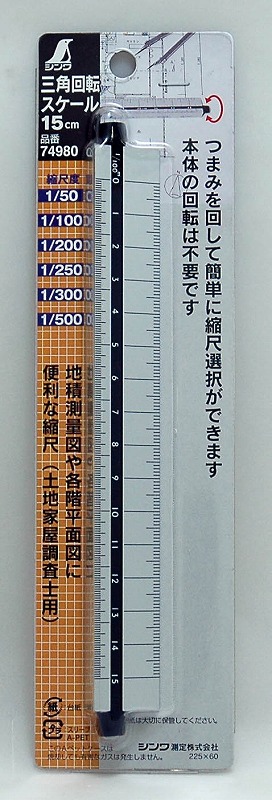 図面作成、寸法の読み取りに使用する三角スケール