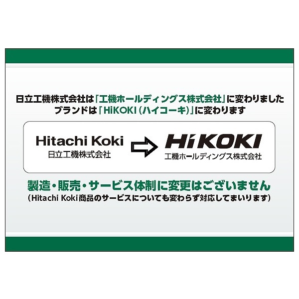 ※2018年10月より「HITACHI」「Hitachi Koki」の電動工具製品は、新ブランド「HiKOKI」に順次切り替わります。なお、型番・仕様は変わりません。