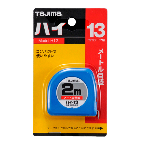 ●目盛仕様:メートル目盛、JIS1級。●テープ幅:13mm。●テープ長さ:2m。