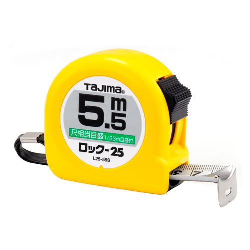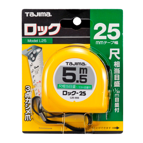 ●目盛仕様:尺相当目盛。●テープ幅:25mm。●テープ長さ:5.5m。●ヨンゴーゴーピッチ表示付。●ストラップ付。●大型ベルトクリップ付。●爪飛び防止用プロテクター付。