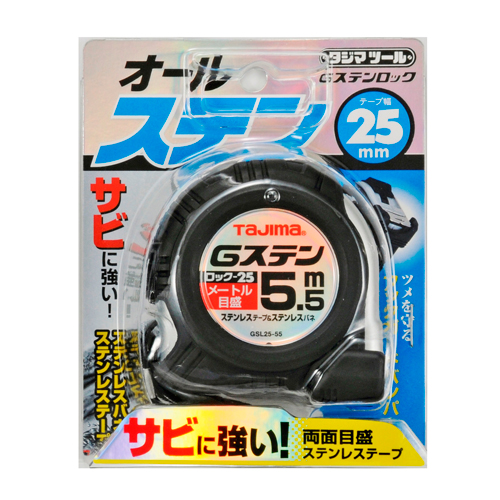 ●目盛仕様:メートル目盛、JIS1級、両面目盛。●テープ幅:25mm。●テープ長さ:5.5m。●ヨンゴーゴーピッチ表示付。●ストラップ付。●大型ベルトクリップ付。●爪飛び防止用プロテクター付。