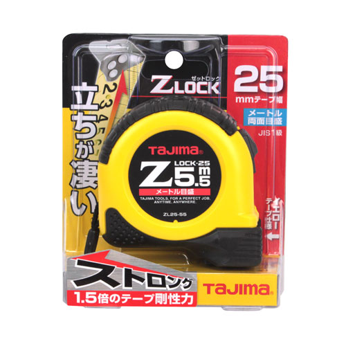 ●目盛仕様:メートル目盛、両面目盛り、JIS1級、イエローテープ。●テープ幅:25mm。●テープ長さ:5.5m。●ヨンゴーゴーピッチ表示付。●ストラップ、大型ベルトクリップ付。●減速ボタン付。●爪飛び防止用プロテクター付。●ショックアブソーバー付。