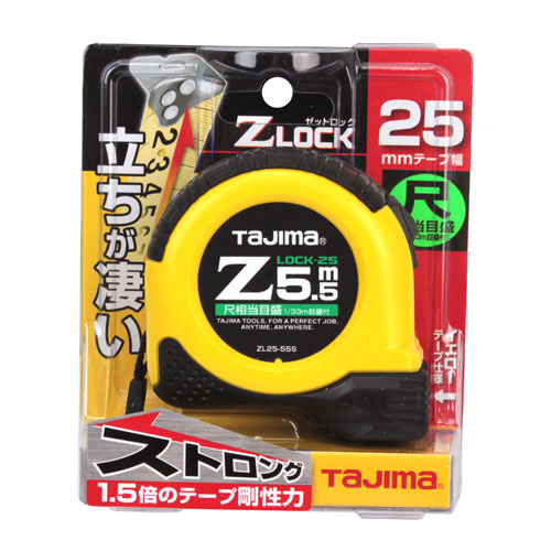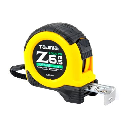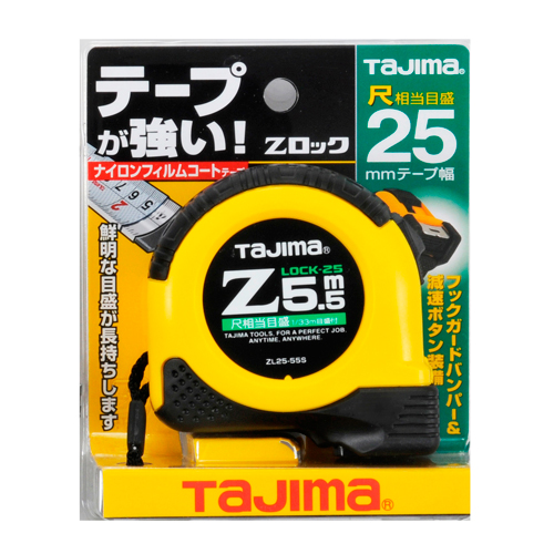 ●目盛仕様:尺相当目盛、両面目盛、イエローテープ。●テープ幅:25mm。●テープ長さ:5.5m。●ヨンゴーゴーピッチ表示付。●ストラップ、大型ベルトクリップ付。●減速ボタン付。●爪飛び防止用プロテクター付。●ショックアブソーバー付。