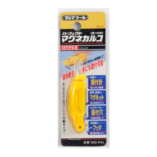 強力マグネット(300mT)で鉄部にしっかり取り付けられます。木部にも取り付けられる据付針付です。コンクリート釘を利用してコンクリート面にも取り付けられる据付穴付です。化粧板や据付跡は残したくない部材などの取り付けに便利な金属フック付です。