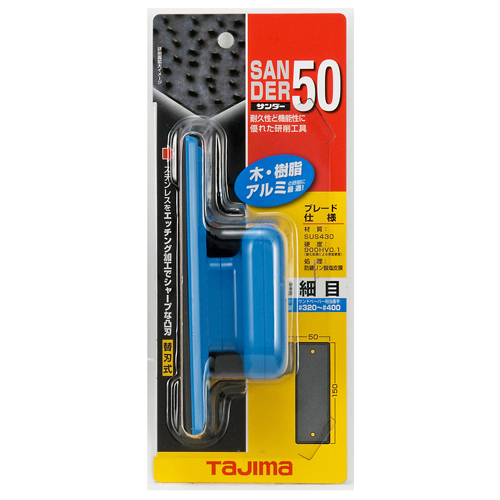●細目(サンドペーパー320~400相当)。●適合替刃:細目・SAB-50S。●本体色:青。●製品重量:95g。●広い平面用。●長さ×幅×高さ(mm):150×50×50。