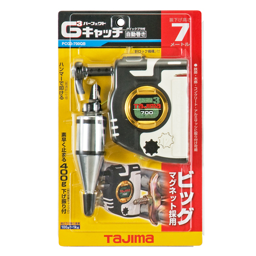 ●自動巻取式。●振下げ高さ:7m。●セット内容:本体、クイックブラ(400G)。●対応重量:100g~1000g。●糸の長さ:7m。●製品重量:240g。