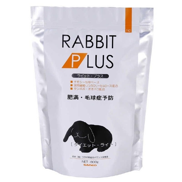 ●ラビットプラスは、うさぎの成長と健康維持のために高繊維質なチモシー牧草を主原料に、年齢や体の状態に合わせた栄養成分の調整を行ったプレミアムフードです。