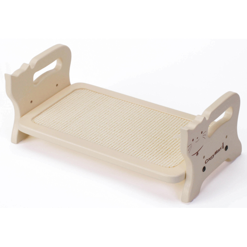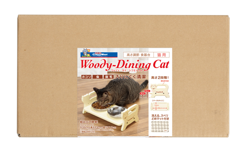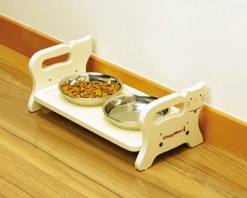 ●ペットの体型に合わせて高さが2段階(床から4、6cm)に調節できる。テーブル面の有効サイズは14×28cm。