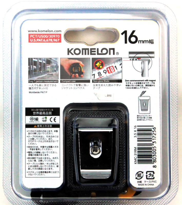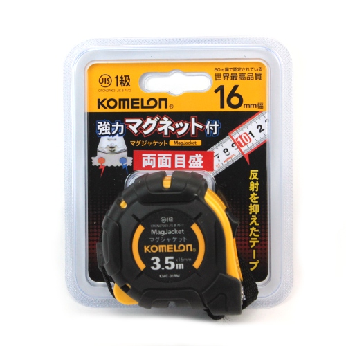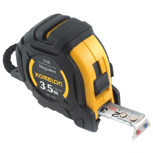 ●テープ幅:16mm。●テープ長:3.5m。●目盛仕様:メートル。●JIS1級。●両面目盛。●強力マグネット付爪。