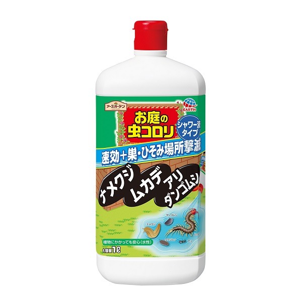 ●かけるだけでお庭のイヤな害虫をまとめてすばやく退治する、液体シャワータイプの害虫駆除剤です。