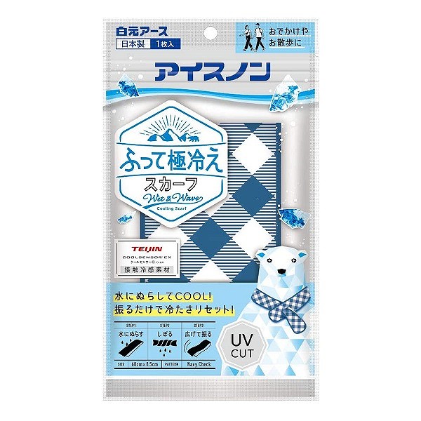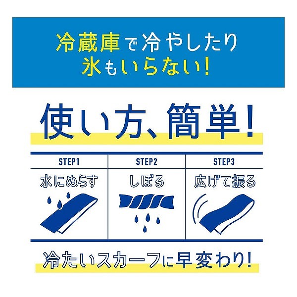 ●水にぬらし、しぼって振るだけで、冷たいスカーフに早変わりする極冷えスカーフです。