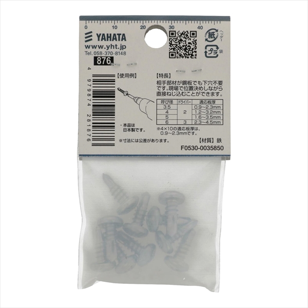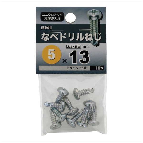 ●材質は鉄で三価クロメートめっき。十字穴付きのなべ頭タッピンねじで先端が切り刃になっています。この切り刃で鉄板に下穴をあけ、連絡してタップ立て、締付けまでがドリルねじ一本で出来ます。規格はJIS B 1125 をご覧ください。