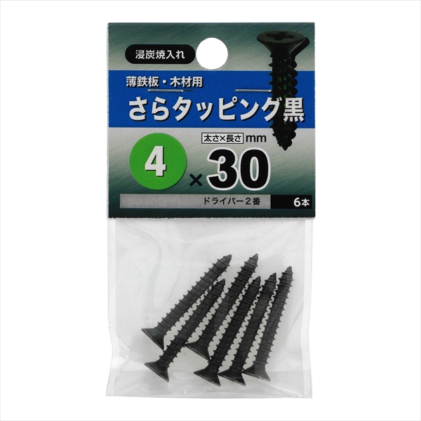 ●十字穴付きの皿頭タッピンねじです。相手部材には規定の下穴と頭部を出さない為の座ぐり加工が必要です。材質は鉄で耐食性向上のため黒色亜鉛クロメートがしてあります。規格はJIS B 1122附属書をご覧ください。