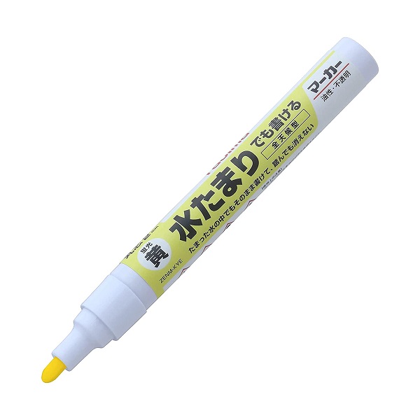 ●雨天時や雨あがりの濡れた面にもそのまま筆記できる、全天候型マーカーです。