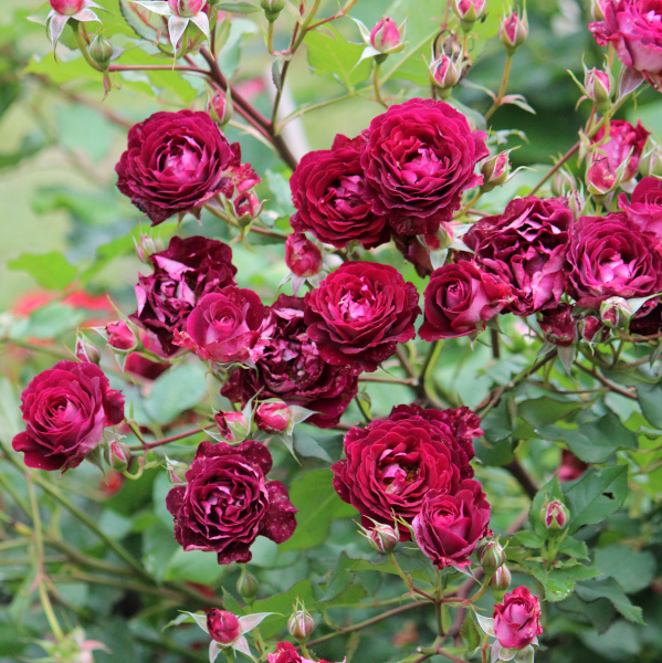 ●ワインカラーと裏が白のバイカラーで数輪の房咲きになり、花付きが良い。