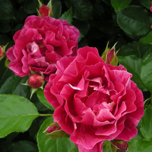 赤にピンクの絞りが入り、フリルがかった花弁が印象的
