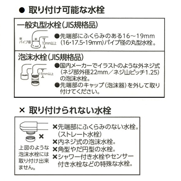 ※一部の泡沫水栓は取りつかない場合がございます。