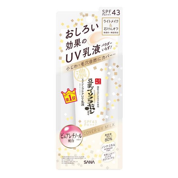 ●豆乳のエイジングケア(年齢に応じたお肌のお手入れ)UV乳液でほうれい線を目立ちにくくします。